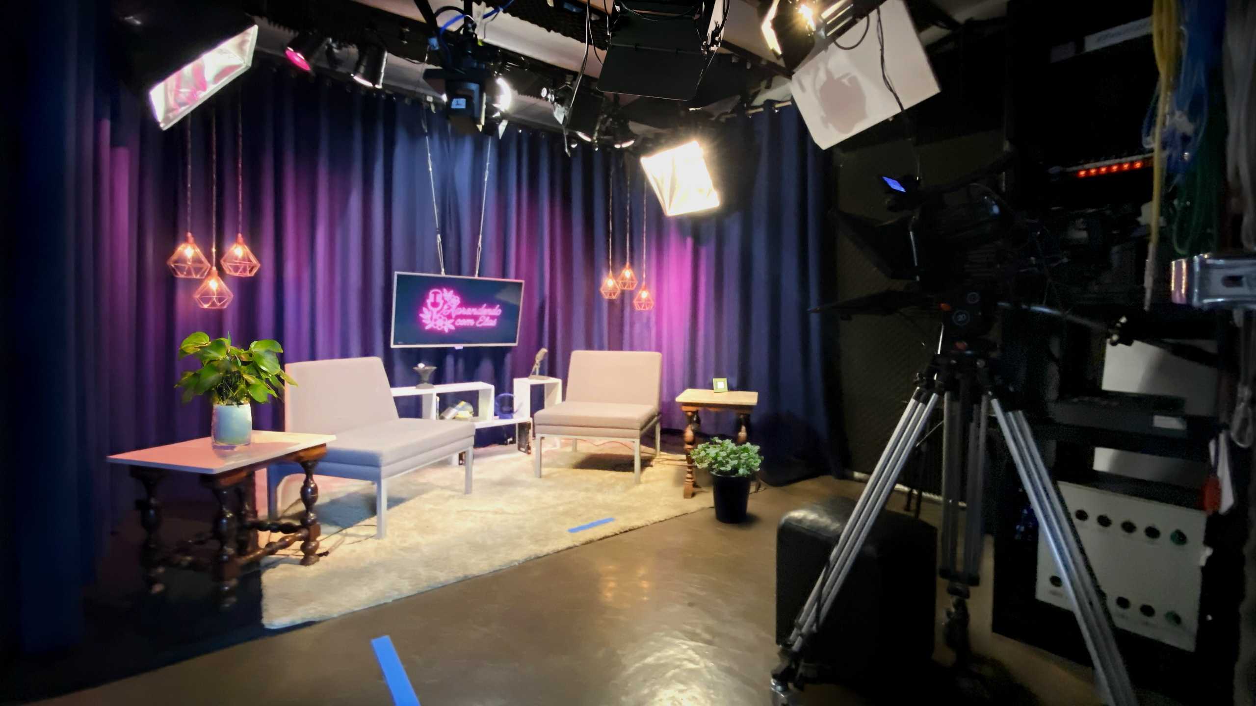 O Estúdio 2 integra o parque técnico da Podcast-me!, com infraestrutura profissional de câmeras, áudio, iluminação e operação, sempre dentro de um fluxo organizado, funcional e pensado para facilitar a gravação.